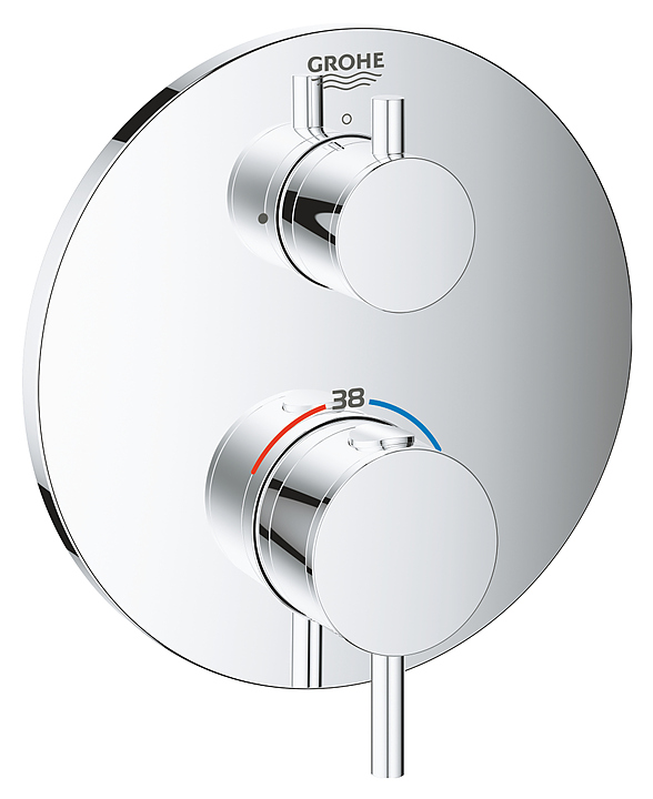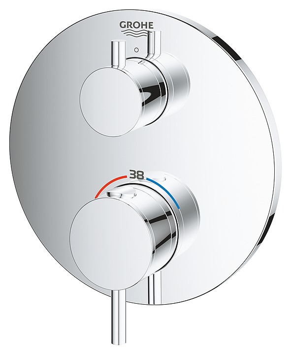 Термостат для душа Grohe Atrio 24134003 предназначен для использования в ванных комнатах для подачи горячей и холодной воды. Серия Atrio отличается лаконичным дизайном, элегантностью и ручной сборкой смесителей. Изделие оснащено металлическими рукоятками и металлической накладной панелью с покрытием StarLight, устойчивым к царапинам и обеспечивающим блеск на много лет. Особенности: