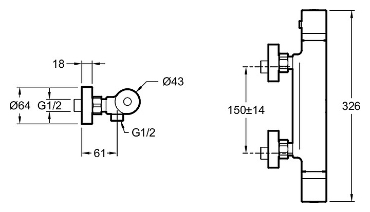 Смеситель для душа настенный термостатический Jacob Delafon RIVOLI E24324-CP