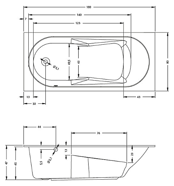 Ванна RIHO LAZY LEFT 180x80 см, акрил