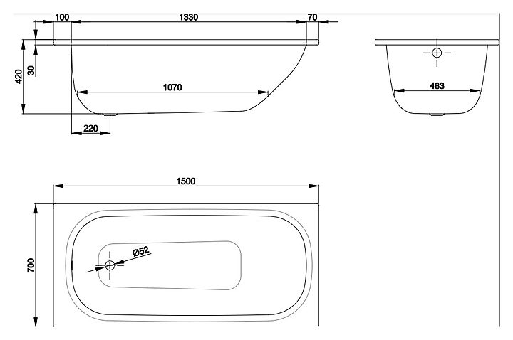Ванна BETTE Form 2941-000 AD PLUS 150х70 см, сталь