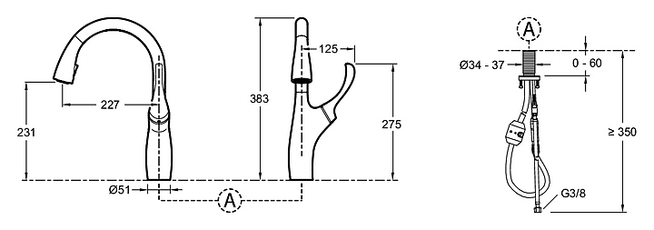 Смеситель для кухни с вытяжным изливом Jacob Delafon SUZANNE E72511-CP