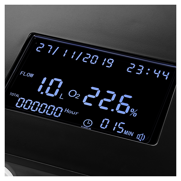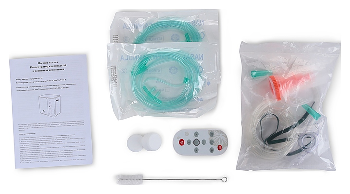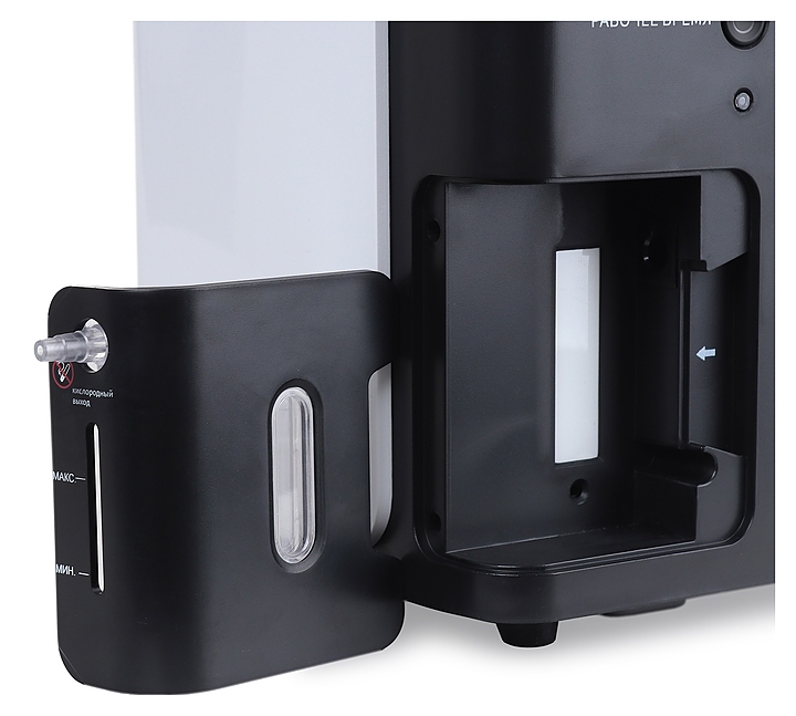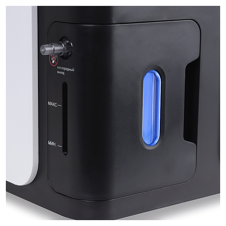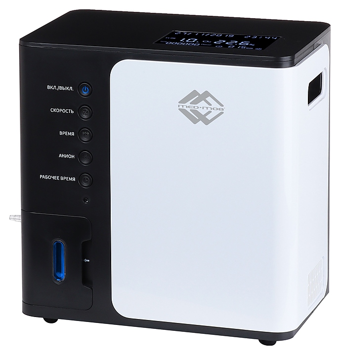 Концентратор кислорода Med-Mos Y007-1 с РУ используется в домашних условиях и в медицинских учреждениях для выработки концентрированного медицинского кислорода из обычного атмосферного воздуха и для мелкодисперсного распыления (функция небулайзера). Воздух из помещения поступает в концентратор, очищается, проходя через систему фильтрации, после чего сжимается и при переменном давлении подается на одну из двух колонок, наполненных адсорбентом – так называемое «молекулярное сито». Молекулярное сито поглощает азот и примеси, но беспрепятственно пропускает кислород. В результате данного процесса концентрация О2 на выходе из аппарата возрастает до 90 %. Модель оснащена пультом дистационного управления, 2 ручками и четырьмя устойчивыми ножками из мягкой резины. Прибор поставляется с регистрационным удостоверением. Комплектация: