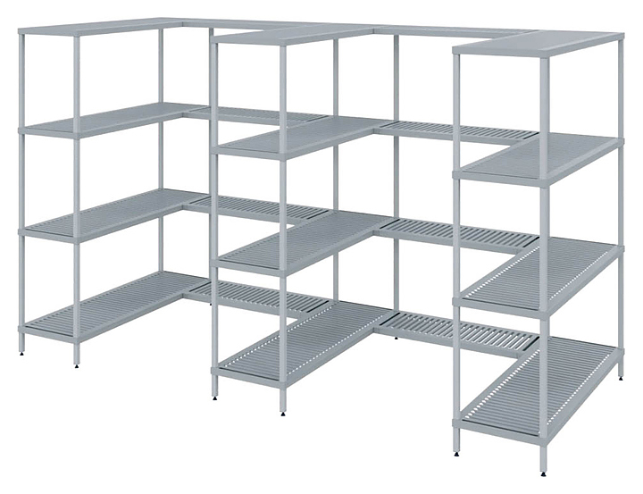 Модульный стеллаж POLAIR LOAD.ME POLY 18AL.3PP50.12B предназначен для хранения продукции в холодильных и морозильных камерах, кухнях, лабораториях, на предприятиях общественного питания и торговли, а также в прачечных и других местах общего хранения. Модель оснащена 3 регулируемыми по высоте полками-решетками и ножками. Каркас выполнен из анодированного алюминиевого профиля, полки - из армированного полипропилена, ножки - из прочного композитного сплава. Модель представляет собой базовую секцию модульной стеллажной системы и может использоваться как самостоятельно, так и стыковаться в линию с дополнительными линейной и угловой секциями. Комплектация: