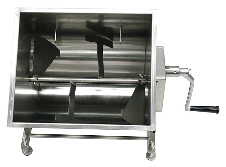 Фаршемешалка Kocateq FME60T используется на предприятиях общественного питания и торговли для перемешивания измельченного мяса или рыбы в однородную смесь. Модель оснащена ручным приводом, хабом для подключения электрического привода и откидным бункером. Корпус выполнен из нержавеющей стали, съемная ось с лопастями - из нержавеющей стали толщиной 3 мм, емкость для смешивания - из нержавеющей стали толщиной 2 мм. В комплект поставки входит съемная ручка для перемешивания без использования электропривода. Особенности: