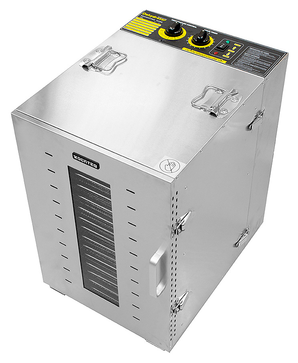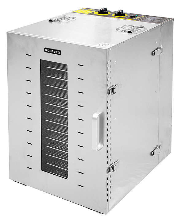 Дегидратор Kocateq DHFD16 используется на предприятиях общественного питания и торговли, в производственных цехах, а также в домашних условиях для сушки овощей, грибов, фруктов и ягод. Модель оснащена аналоговой панелью управления с термостатом. Корпус выполнен из нержавеющей стали Aisi 201, решетки - из нержавеющей стали Aisi 304. Особенности: