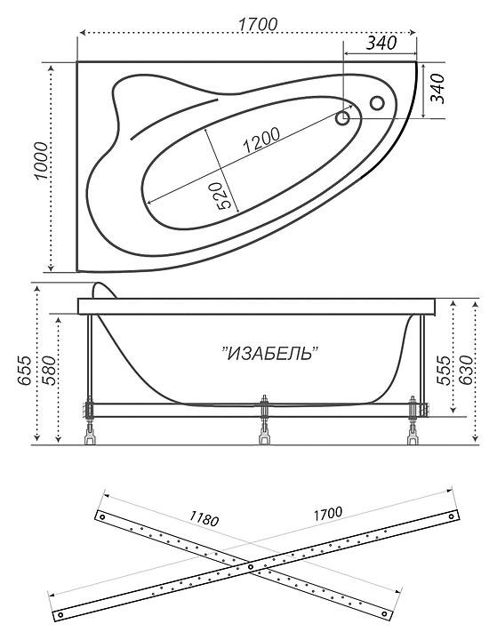 Ванна Triton Изабель 170х100 см, акрил, левая
