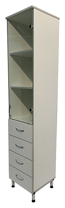 Лабораторный шкаф Мед Мебель ШЛ 15.005 с РУ предназначен для оптимизации рабочего пространства в медицинской лаборатории. Модель оснащена полками, выдвижными ящиками, дверцей и регулируемыми по высоте ножками. Шкаф выполнен из ЛДСП, дверца - из стекла, каркас - из стального профиля. Особенности: