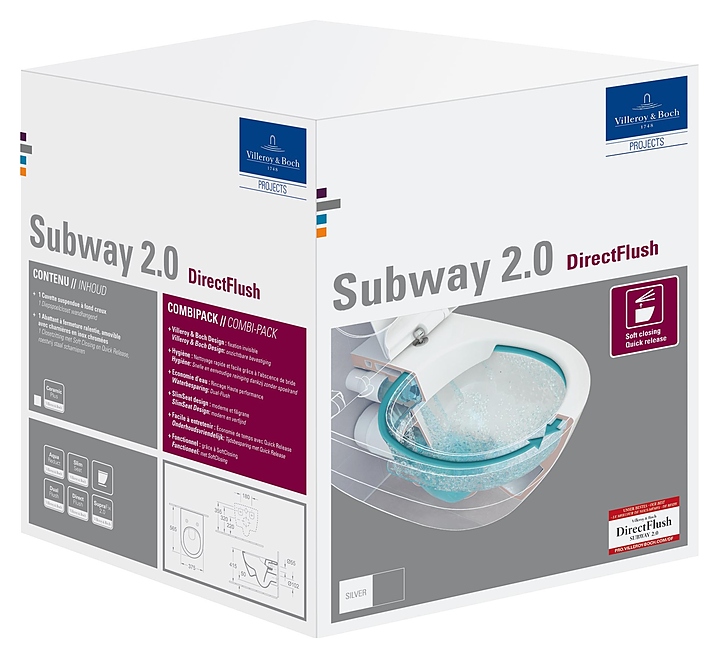 Подвесной унитаз Villeroy & Boch Subway 2.0 5614R2R1 выполнен в современном стиле. Благодаря подвесной конструкции унитаз не занимает много места в помещении, а свободное пространство под чашей делает уборку в ванной комнате гораздо легче. Отсутсвие смывного края позволяет предотвратить скопление бактерий и грязи на внутренней поверхности чаши и обеспечивает ее чистоту и гигиеничность использования. Изделие из керамики обладает повышенной прочностью, устойчиво к негативным внешним факторам, таким как грязь и запахи, а так же долго будет оставаться идеально белым. В комплект поставки входит унитаз и сиденье с крышкой. Особенности: