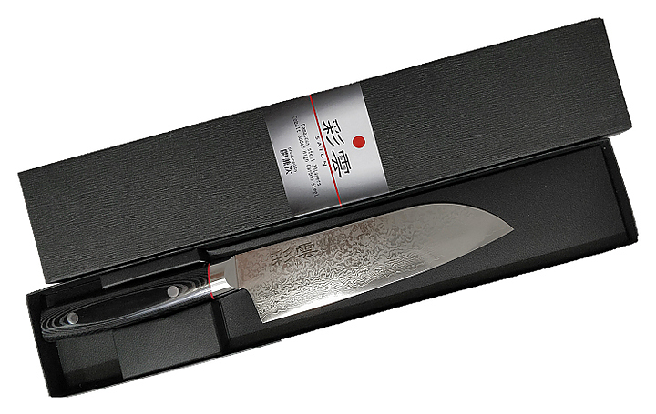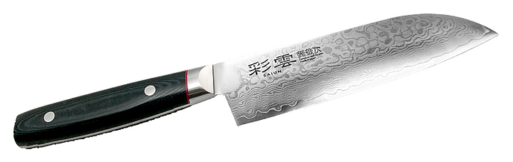 Нож Сантоку Kanetsugu 9003 предназначен для чистки, нарезания, шинкования любых продуктов. Этот нож с ламинированными лезвиями создан по традиционной японской технике, с обкладками дамасской стали VG-10. На лезвие нанесены узоры дамасских обкладок в количестве 33 последовательных слоёв никелевых сплавов и нержавеющей стали. Рукоять клёпанная, посажена на прочный хвостовик, выполнена из устойчивой к коррозии стали, украшена накладками из не гниющего пластика. Особенности: