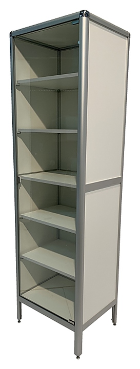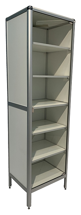 Лабораторный шкаф Мед Мебель MED 17.008al предназначен для хранения различного инвентаря и других предметов, которые используются в лабораториях и медучреждениях. Модель оснащена полками, дверцей и регулируемыми по высоте ножками. Шкаф выполнен из ЛДСП, каркас - из алюминиевого профиля, дверца - из стекла. Особенности: