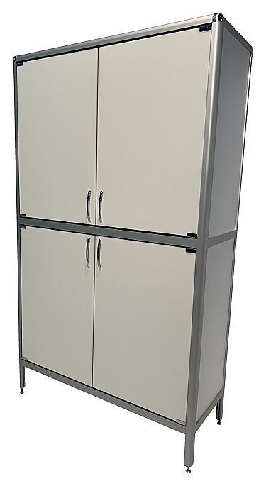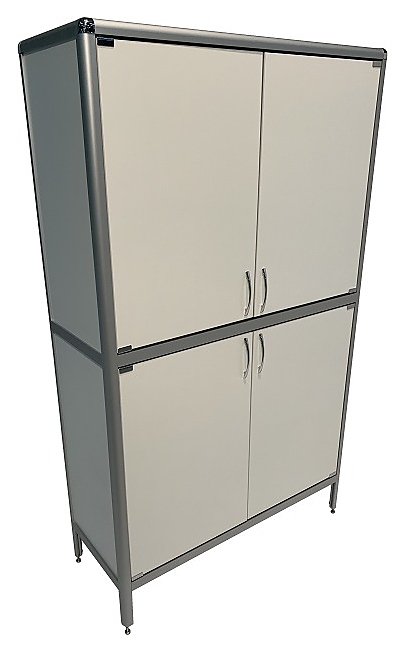 Лабораторный шкаф Мед Мебель MED 17.009al предназначен для хранения различного инвентаря и других предметов, которые используются в лабораториях и медучреждениях. Модель оснащена полками, дверцами и регулируемыми по высоте ножками. Шкаф выполнен из ЛДСП, каркас - из алюминиевого профиля. Особенности: