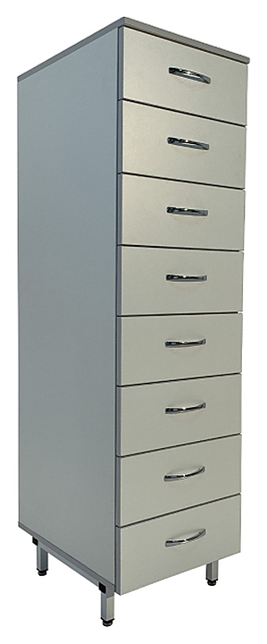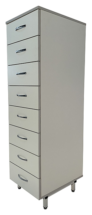 Лабораторный картотечный шкаф Мед Мебель ШЛк 23.002 с РУ предназначен для хранения документации сотрудников лаборатории медучреждения. Модель оснащена выдвижными ящиками и регулируемыми по высоте ножками. Шкаф выполнен из ЛДСП, каркас - из стального профиля. Особенности: