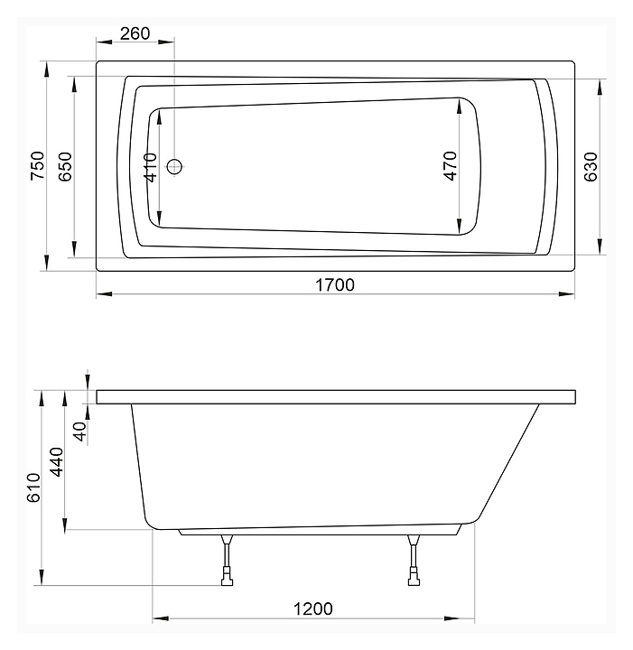 Ванна Ravak Domino Plus 170х75 см, акрил