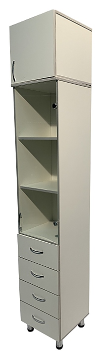 Медицинский шкаф Мед Мебель MD ШМ 14.18 предназначен для размещения и систематизации медицинской документации и оптимизации пространства в медицинских учреждениях. Модель оснащена полками, дверцами, выдвижными ящиками и регулируемыми по высоте ножками. Шкаф выполнен из ЛДСП, средняя дверца - из стекла. Особенности: