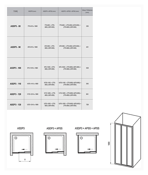 Душевая дверь Ravak Supernova ASDP3 предназначена для использования в ванных комнатах. Конструкция раздвижных дверей позволяет устанавливать в помещении душевые кабинки небольших размеров. Перевернув изделие на 180°, получится левый/правый варианты входа. Витраж выполнен из безопасного стекла Transparent и покрыт слоем AntiCalc® для защиты поверхности от минеральных разводов. Поддон в комплект поставки не входит и приобетается отдельно. Устанавливается в облицованный кафелем угол ванной комнаты на поддоны RAVAK ANETA, ANGELA, PERSEUS, PERSEUS PRO, PERSEUS PRO FLAT, PERSEUS PRO CHROME, GIGANT PRO, GIGANT PRO FLAT, GIGANT PRO CHROME или непосредственно на пол со встроенным душевым каналом. Особенности: