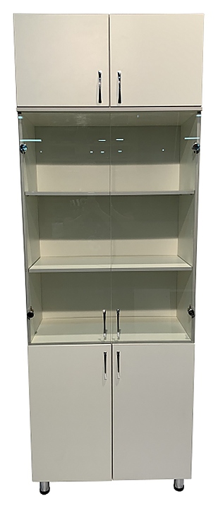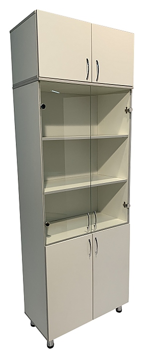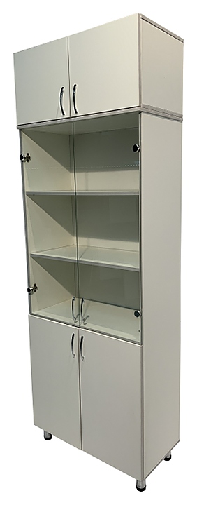 Медицинский шкаф Мед Мебель MD ШМ 14.28 предназначен для размещения и систематизации медицинской документации и оптимизации пространства в медицинских учреждениях. Модель оснащена полками, дверцами и регулируемыми по высоте ножками. Шкаф выполнен из ЛДСП, средние дверцы - из стекла. Особенности: