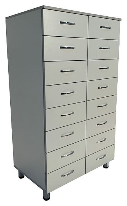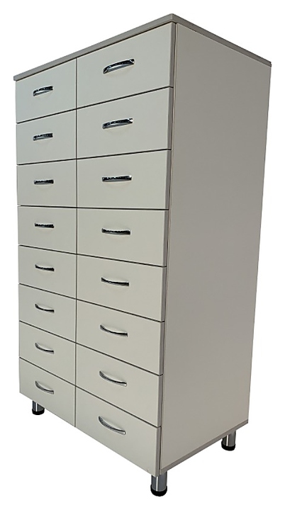 Медицинский картотечный шкаф Мед Мебель MD ШМК 16.04 предназначен для хранения и систематизации регистрационных документов пациентов в регистратурах медицинских учреждений. Модель оснащена выдвижными ящиками и регулируемыми по высоте ножками. Шкаф выполнен из ЛДСП. Особенности: