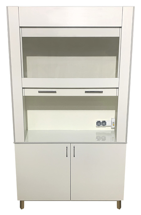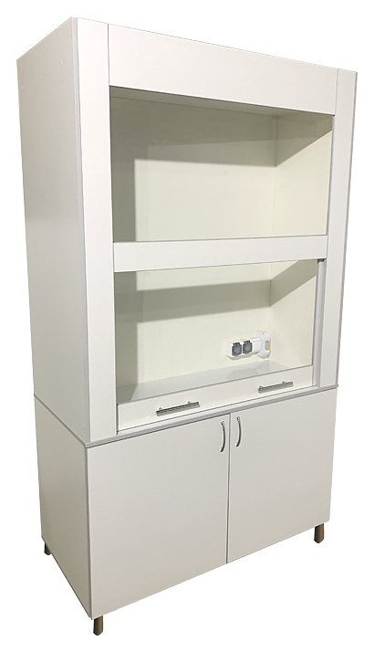 Лабораторный вытяжной панорамный шкаф Мед Мебель ШВ 11.002 предназначен для проведения демонстрационных анализов с использованием токсичных веществ в лабораториях любых типов, а также в кабинетах химии. Модель оснащена пылевлагозащитным светильником с выключателем и двумя брызгозащитными розетками, автоматом отключения питания и регулируемыми по высоте ножками. Каркас и обшивка - из ЛДСП, столешница - из постформинга. Особенности: