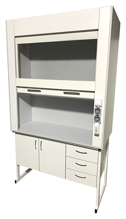 Лабораторный вытяжной панорамный шкаф Мед Мебель ШВ 11.005 предназначен для проведения демонстрационных анализов с использованием токсичных веществ в лабораториях любых типов, а также в кабинетах химии. Модель оснащена пылевлагозащитным светильником с выключателем и двумя брызгозащитными розетками, автоматом отключения питания и регулируемыми по высоте ножками. Каркас - из стального профиля, обшивка - из ЛДСП, столешница - из постформинга. Особенности: