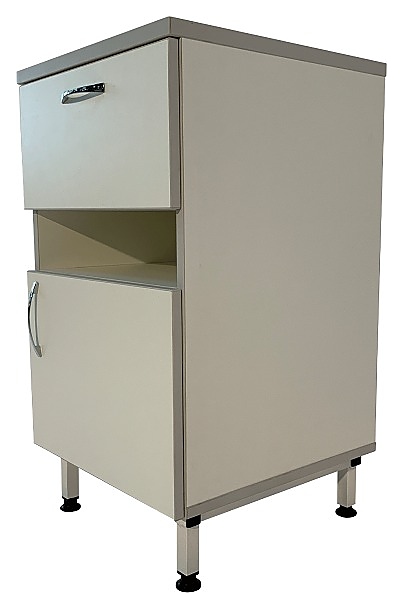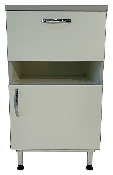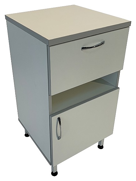 Лабораторная тумба Мед Мебель ТЛ 14.008 с РУ предназначена для хранения различных предметов и приборов в лабораториях и медучреждениях. Модель оснащена выдвижным ящиком, дверцей и полкой-нишей. Обшивка и столешница выполнены из ЛДСП, каркас - из стального профиля. Тумба поставляется с регистрационным удостоверением. Особенности: