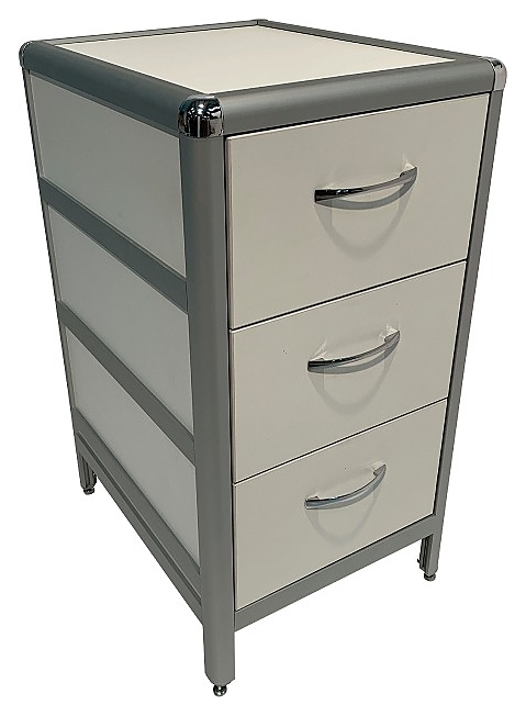 Лабораторная тумба Мед Мебель MED 16.003al с РУ предназначена для хранения предметов и оптимизации рабочего пространства сотрудников в лабораториях и медучреждениях. Модель оснащена выдвижными ящиками. Обшивка и столешница выполнены из ЛДСП, каркас - из алюминиевого профиля. Тумба поставляется с регистрационным удостоверением. Особенности: