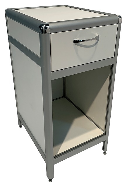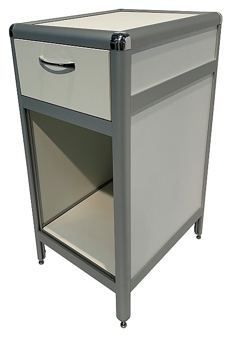 Лабораторная тумба Мед Мебель MED 16.008al с РУ предназначена для хранения предметов и оптимизации рабочего пространства сотрудников в лабораториях и медучреждениях. Модель оснащена выдвижным ящиком и нишей-полкой. Обшивка и столешница выполнены из ЛДСП, каркас - из алюминиевого профиля. Тумба поставляется с регистрационным удостоверением. Особенности: