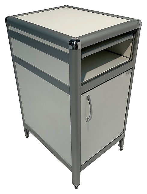 Лабораторная тумба Мед Мебель MED 16.009al с РУ предназначена для хранения предметов и оптимизации рабочего пространства сотрудников в лабораториях и медучреждениях. Модель оснащена нишей с выдвижной полкой и дверцей. Обшивка и столешница выполнены из ЛДСП, каркас - из алюминиевого профиля. Тумба поставляется с регистрационным удостоверением. Особенности: