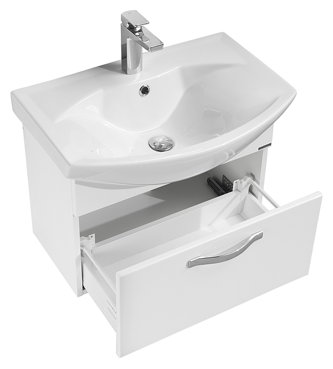 Тумба AQUATON Ария 65 1A134001AA010 выполнена в современном стиле. Благодаря подвесной конструкции изделие не занимает много места и обеспечивает легкую уборку в ванной комнате. Модель оснащена одним вместительным выдвижным ящиком с удобной системой внутренней организации пространства. Корпус изделия выполнен из влагостойкой ЛДСП, а фасад из высококачественной МДФ и окрашены белоснежной глянцевой полиэфирной краской ультрафиолетового отверждения, которая обеспечивает изделию привлекательный внешний вид, а также износостойкость и долговечность. Тумба используется вместе с раковиной Santek Смайл 65 1WH207782. Комплектация: