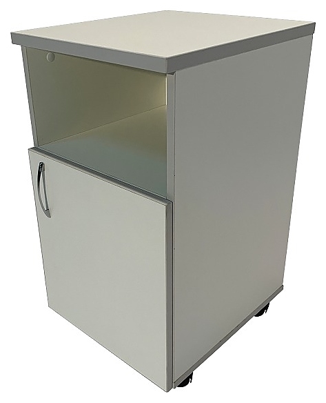 Медицинская тумба Мед Мебель ТМ 13.11 с РУ предназначена для хранения личных вещей пациента в больничных учреждениях. Тумба устанавливается у кровати пациента и позволяет больному осуществлять прием пищи или размещать в непосредственной близости от себя часто используемые вещи. Модель оснащена полкой-нишей, дверцей и ножками в виде колесных опор. Обшивка и столешница тумбы выполнены из ЛДСП, колеса - из пластика. Тумба поставляется с регистрационным удостоверением. Особенности: