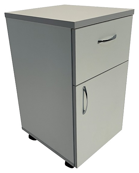 Медицинская тумба Мед Мебель ТМ 13.13 с РУ предназначена для хранения личных вещей пациента в больничных учреждениях. Тумба устанавливается у кровати пациента и позволяет больному осуществлять прием пищи или размещать в непосредственной близости от себя часто используемые вещи. Модель оснащена выдвижным ящиком, дверцей и ножками в виде колесных опор. Обшивка и столешница тумбы выполнены из ЛДСП, колеса - из пластика. Тумба поставляется с регистрационным удостоверением. Особенности: