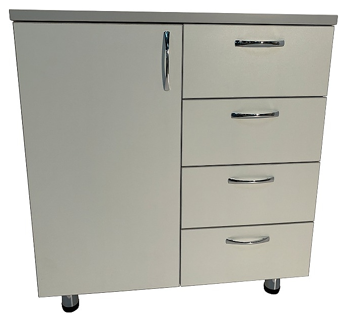 Медицинская тумба для аппаратуры Мед Мебель MD ТМ 13.18 с РУ предназначена для размещения различной медицинской аппаратуры, которая используется в больницах и других медучреждениях. Модель оснащена выдвижными ящиками справа, дверцей - слева и регилируемыми по высоте ножками. Обшивка и столешница тумбы выполнены из ЛДСП. Тумба поставляется с регистрационным удостоверением. Особенности: