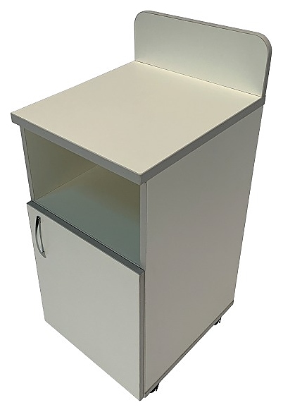 Медицинская тумба для аппаратуры Мед Мебель MD ТМ 13.08 с РУ предназначена для размещения физиотерапевтической аппаратуры у кроватей больных в больницах и других медучреждениях. Модель оснащена нишей-полкой, дверцей и ножками в виде колесных опор. Обшивка и столешница тумбы выполнены из ЛДСП. Тумба поставляется с регистрационным удостоверением. Особенности: