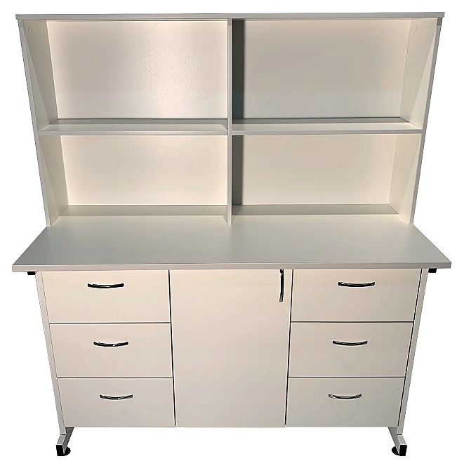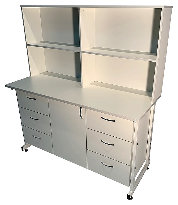 Лабораторный стол-тумба Мед Мебель СТл 18.011 с РУ предназначен для проведения лабораторной диагностики и оптимизации рабочего места сотрудников в лабораториях и медучреждениях. Модель оснащена 6 выдвижными ящиками (3 - слева, 3 - справа), дверцей посередине, 2 полками и регулируемыми по высоте ножками за счет винтовых опор-регуляторов. Каркас обеспечивает жесткость, устойчивость и прочность конструкции. Обшивка и столешница выполнены из ЛДСП, каркас - из стального профиля. Стол поставляется с регистрационным удостоверением. Особенности: