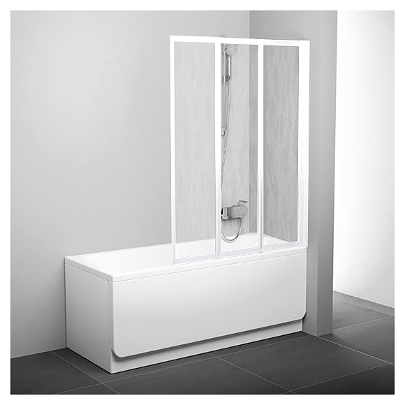 Шторка для ванны Ravak VS3 115х140 см, складная, Rain, профиль белый