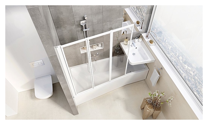 Шторка для ванны Ravak VS3 115х140 см, складная, Transparent, профиль белый
