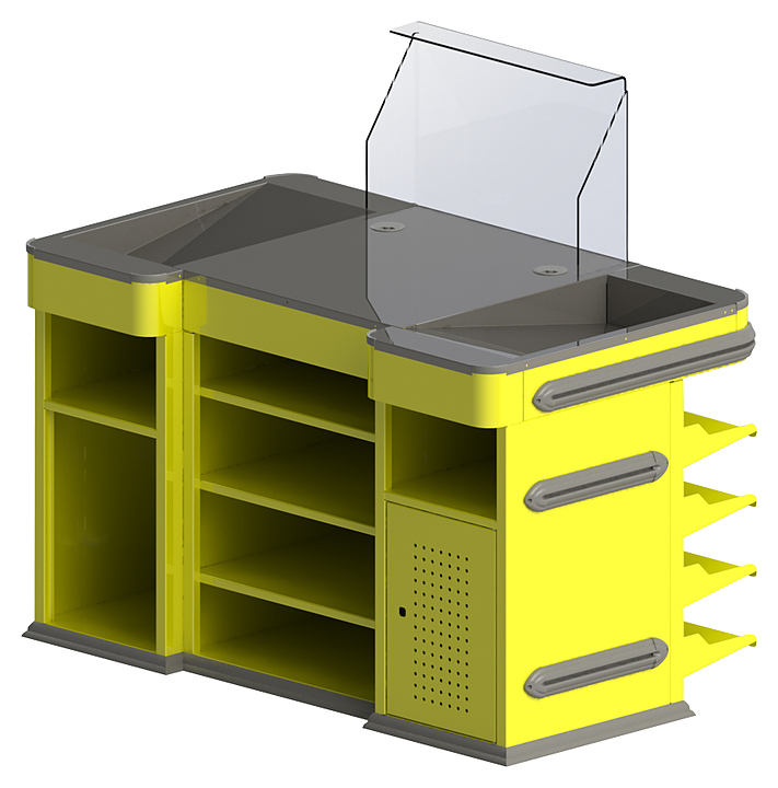 Кассовый бокс экспресс Commerce Renessance Рэк 1420 см предназначен для упрощения обслуживания покупателей и проведения с ними взаиморасчетов на предприятиях общественного питания и торговли. Модель оснащена тумбой кассира, полками в основании, 8 наклонными полками для продукции, защитой кассира по периметру. Модель доступна к заказу в синем, красном, оранжевом, желтом, темно-зеленом, светло-зеленом, сером, черном и фиолетовом цвете. Особенности: