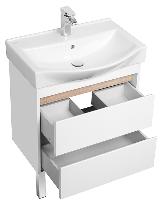 Тумба AQUATON Нортон 65 1A248801NT010 выполнена в современном стиле. Благодаря подвесной конструкции изделие не занимает много места и обеспечивает легкую уборку в ванной комнате. Модель оснащена двумя вместительными выдвижными ящиками без лицевой фурнитуры, открытие ящиков реализовано за счет удобного выреза на фасаде. Корпус изделия выполнен из влагостойкой ЛДСП, фасады из высококачественной МДФ и окрашены белоснежной глянцевой полиэфирной краской ультрафиолетового отверждения, декоративная вставка из ЛДСП с фактурой натурального дерева дуб эндгрейн, что обеспечивает изделию привлекательный внешний вид, а также износостойкость и долговечность. Тумба используется вместе с раковиной Santek Беверли 65 1WH302501. Особенности: