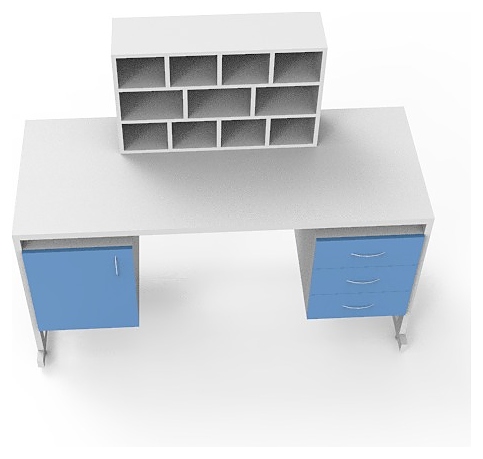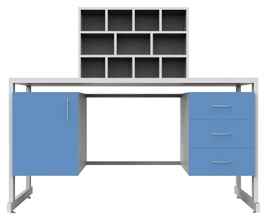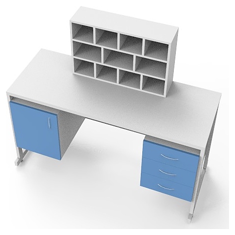 Лабораторный стол для микроскопирования Мед Мебель СЛм 19.004 предназначен для проведения исследований в лабораториях, которые предусматривают применение микроскопа. Модель оснащена 2 боковыми тумбами: левая тумба - с дверцей, правая - с 3 ящиками, и регулируемыми по высоте ножками за счет опор-регуляторов. Надстройка с 11 ячейками позволяет удобно размещать исследуемые образцы. Каркас обеспечивает жесткость, устойчивость и прочность конструкции. Стол и столешница выполнены из ЛДСП, каркас - из стального профиля, покрытого порошковой краской. Особенности: