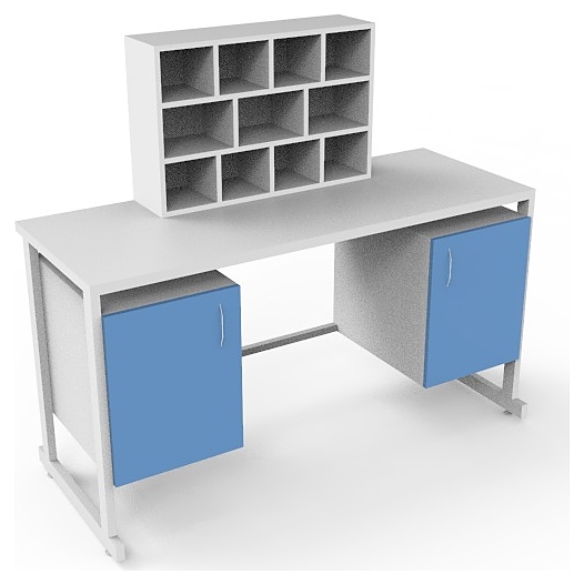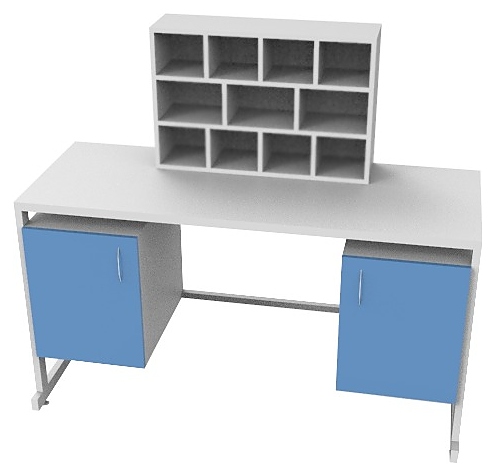 Лабораторный стол для микроскопирования Мед Мебель СЛм 19.005 предназначен для проведения исследований в лабораториях, которые предусматривают применение микроскопа. Модель оснащена 2 боковыми тумбами с дверцами и регулируемыми по высоте ножками за счет опор-регуляторов. Надстройка с 11 ячейками позволяет удобно размещать исследуемые образцы. Каркас обеспечивает жесткость, устойчивость и прочность конструкции. Стол и столешница выполнены из ЛДСП, каркас - из стального профиля, покрытого порошковой краской. Особенности:
