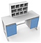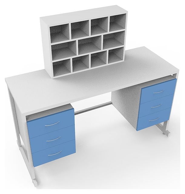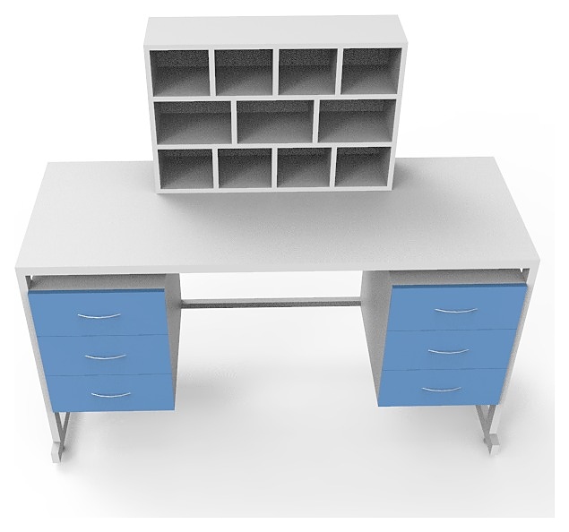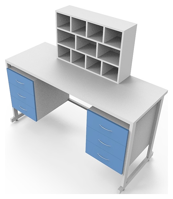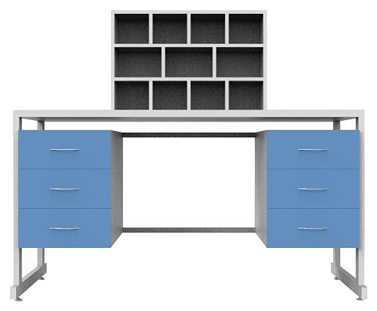 Лабораторный стол для микроскопирования Мед Мебель СЛм 19.006 предназначен для проведения исследований в лабораториях, которые предусматривают применение микроскопа. Модель оснащена 2 боковыми тумбами с 3 ящиками каждая, и регулируемыми по высоте ножками за счет опор-регуляторов. Надстройка с 11 ячейками позволяет удобно размещать исследуемые образцы. Каркас обеспечивает жесткость, устойчивость и прочность конструкции. Стол и столешница выполнены из ЛДСП, каркас - из стального профиля, покрытого порошковой краской. Особенности: