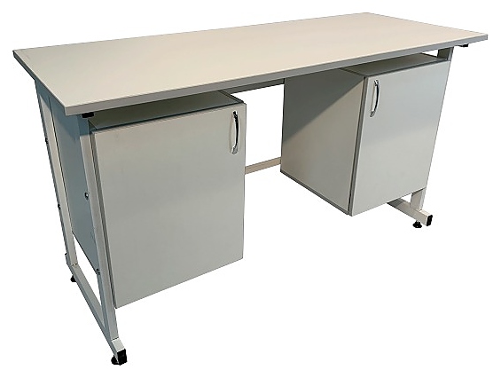 Стол лабораторный Мед Мебель СЛ 12.005 с РУ предназначен для организации рабочего места сотрудника медицинской лаборатории. Модель оснащена 2 боковыми тумбами с дверцей каждая, и регулируемыми по высоте ножками за счет винтовых опор-регуляторов. Каркас обеспечивает жесткость, устойчивость и прочность конструкции. Столешница выполнена из ЛДСП, каркас - из стального профиля, покрытого порошковой краской. Стол поставляется с регистрационным удостоверением. Особенности: