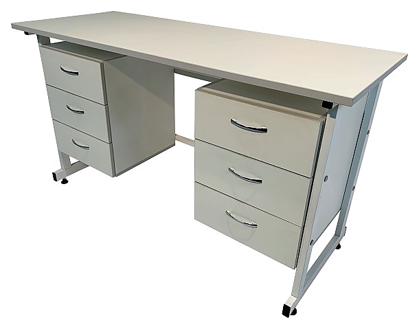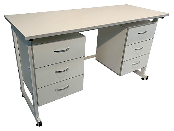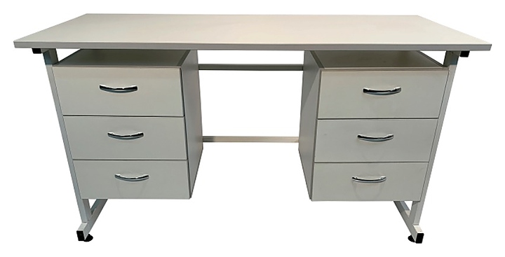 Стол лабораторный Мед Мебель СЛ 12.006 с РУ предназначен для организации рабочего места сотрудника медицинской лаборатории. Модель оснащена 2 боковыми тумбами с 3 выдвижными ящиками каждая и регулируемыми по высоте ножками за счет винтовых опор-регуляторов. Каркас обеспечивает жесткость, устойчивость и прочность конструкции. Столешница выполнена из ЛДСП, каркас - из стального профиля, покрытого порошковой краской. Стол поставляется с регистрационным удостоверением. Особенности: