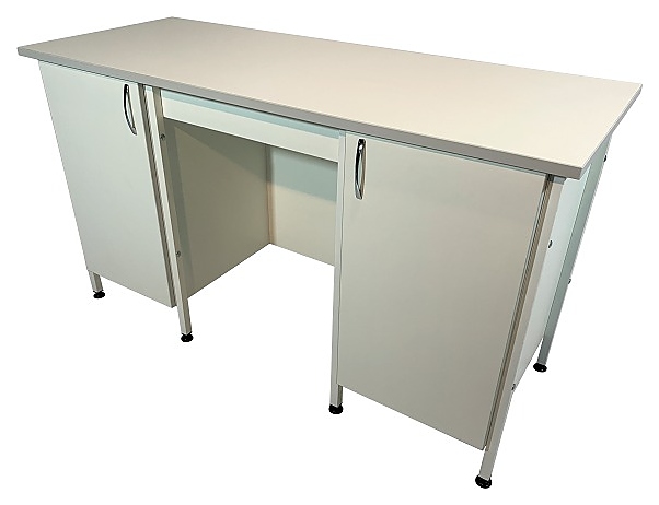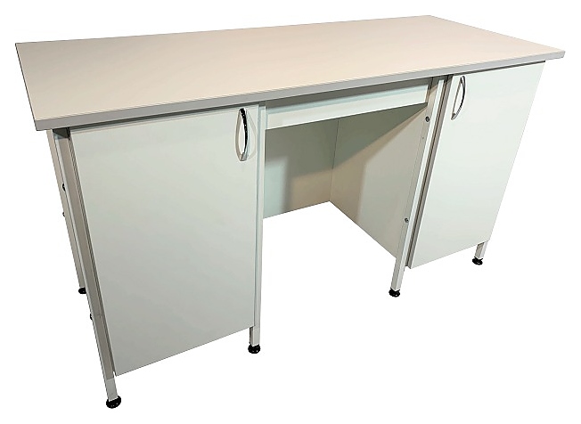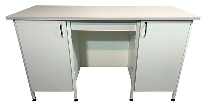 Стол лабораторный Мед Мебель СЛ 12.014 с РУ предназначен для организации рабочего места сотрудника медицинской лаборатории. Модель оснащена тумбами по краям, с дверцей - каждая, перемычкой, придающей изделию дополнительную прочность, и регулируемыми по высоте ножками за счет винтовых опор-регуляторов. Каркас обеспечивает жесткость, устойчивость и прочность конструкции. Обшивка стола и столешница выполнены из ЛДСП, каркас - из стального профиля, покрытого порошковой краской. Стол поставляется с регистрационным удостоверением. Особенности: