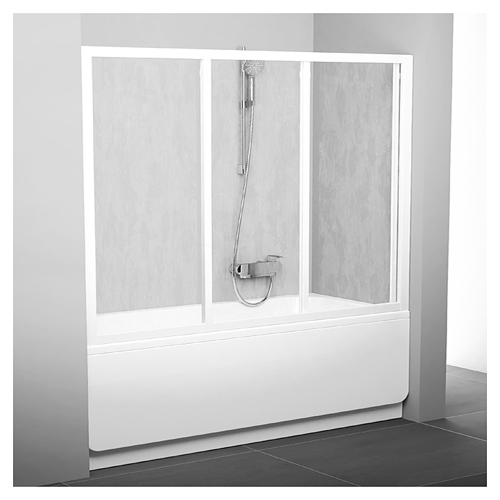 Шторка Ravak Supernova AVDP3 предназначена для установки с ваннами. Модель состоит из одной неподвижной и двух подвижных частей. Рама изготовлена из толстостенных алюминиевых профилей с качественной поверхностной обработкой и максимальной герметичностью. Левый или правый вариант можно получить, повернув изделие на 180°. Изделие оборудовано механизмом AntiBlock, который обеспечивает бесперебойную и тихую работу дверок. Витраж выполнен из пластика. Шторка подходит для прямоугольных ванн RAVAK City, Formy 01, Formy 02, 10°, Classic, Campanula II, Vanda II, Chrome, Domino или для любой классической прямоугольной ванны с ровным передним бортом. Особенности: