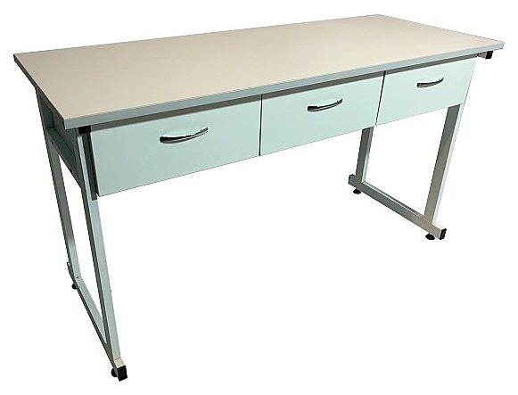 Стол лабораторный Мед Мебель СЛ 12.022 с РУ предназначен для организации рабочего места сотрудника медицинской лаборатории. Модель оснащена 3 выдвижными ящиками и регулируемыми по высоте ножками за счет винтовых опор-регуляторов. Каркас обеспечивает жесткость, устойчивость и прочность конструкции. Обшивка стола и столешница выполнены из ЛДСП, каркас - из стального профиля, покрытого порошковой краской. Стол поставляется с регистрационным удостоверением. Особенности:
