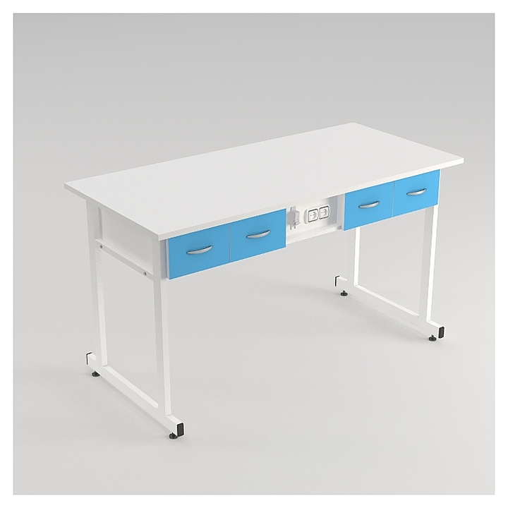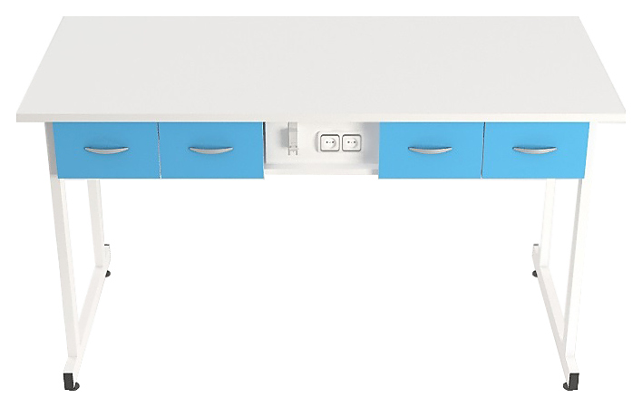 Стол лабораторный Мед Мебель СЛ 12.025 предназначен для организации рабочего места сотрудника медицинской лаборатории. Модель оснащена 4 выдвижными ящиками, 2 розетками, автоматом отключения питания и регулируемыми по высоте ножками за счет винтовых опор. Каркас обеспечивает жесткость, устойчивость и прочность конструкции. Обшивка стола и столешница выполнены из ЛДСП, каркас - из стального профиля, покрытого порошковой краской. Особенности: