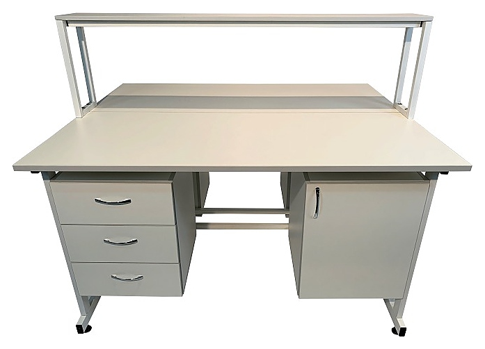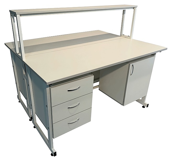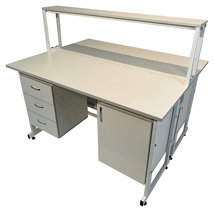 Островной лабораторный стол Мед Мебель Сло 22.012 с РУ предназначен для оптимизации и рационального использования рабочего места сотрудников лабораторий. Модель оснащена 44 тумбами: 2 тумбы - с дверцей, 2 тумбы - с 3 выдвижными ящиками, надстройкой-полкой посередине столешницы, которой могут пользоваться одновременно два сотрудника, и регулируемыми по высоте ножками за счет винтовых опор-регуляторов. Каркас обеспечивает надежность и прочность конструкции. Столешница выполнена из ЛДСП, каркас - из стального профиля, покрытого порошковой краской. Стол поставляется с регистрационным удостоверением. Особенности: