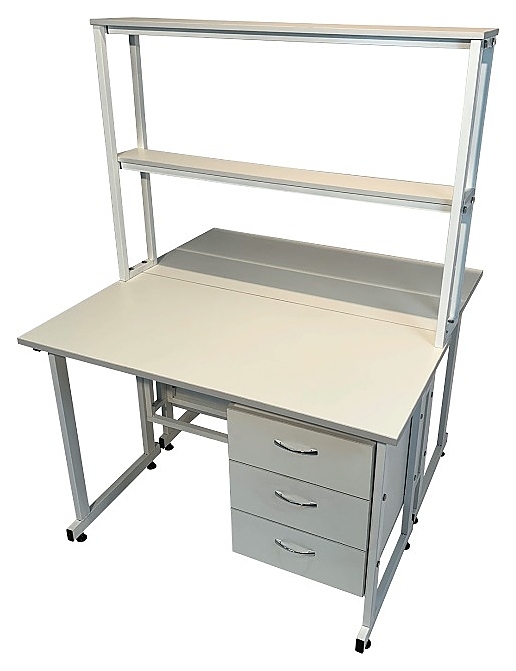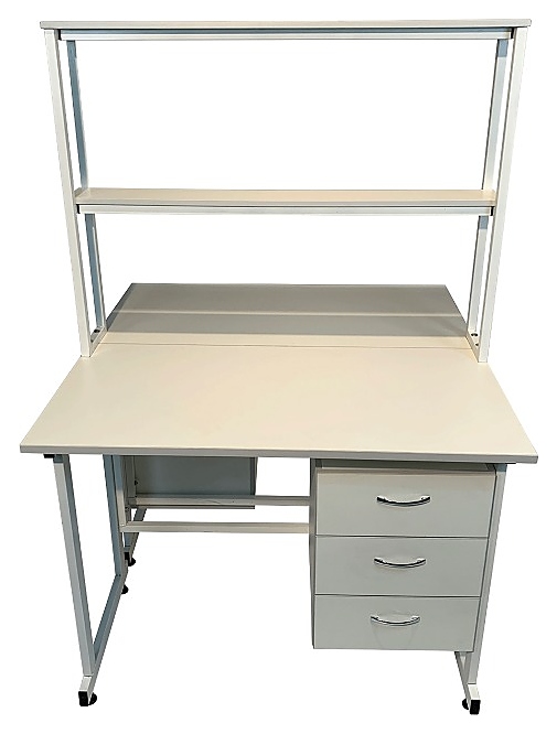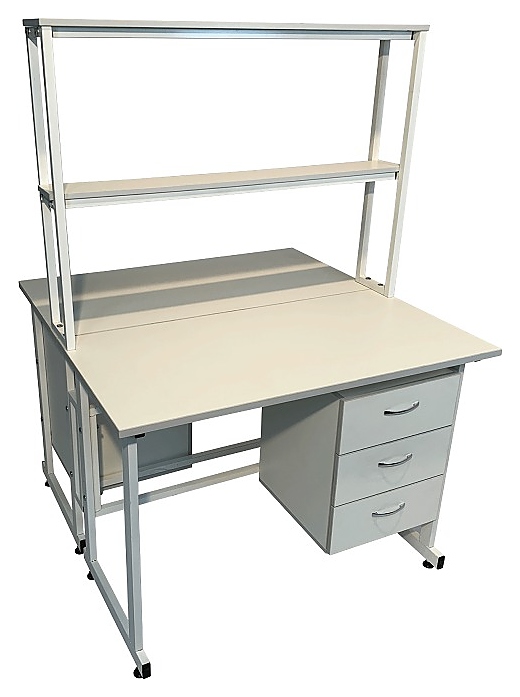 Островной лабораторный стол Мед Мебель Сло 22.015 с РУ предназначен для оптимизации и рационального использования рабочего места сотрудников лабораторий. Модель оснащена надстройкой с 2 полками посередине столешницы, 2 тумбами с 3 выдвижными ящиками каждая, и регулируемыми по высоте ножками за счет винтовых опор-регуляторов. Каркас обеспечивает надежность и прочность конструкции. Столом могут пользоваться одновременно 2 сотрудника. Столешница выполнена из ЛДСП, каркас - из стального профиля, покрытого порошковой краской. Стол поставляется с регистрационным удостоверением. Особенности: