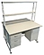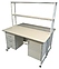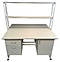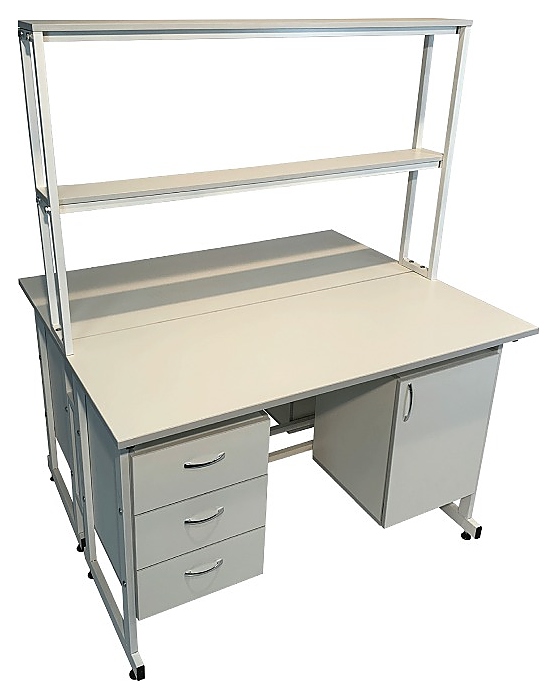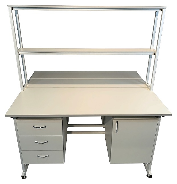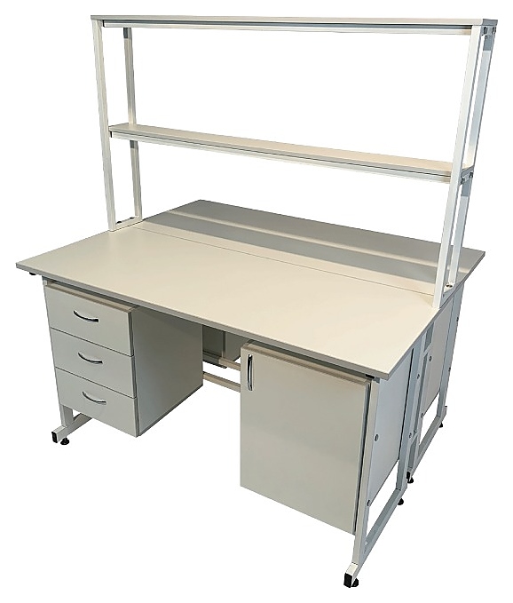 Островной лабораторный стол Мед Мебель Сло 22.018 с РУ предназначен для оптимизации и рационального использования рабочего места сотрудников лабораторий. Модель оснащена надстройкой с 2 полками посередине столешницы, 4 тумбами: 2 тумбы - с дверцей, 2 тумбы - с 3 выдвижными ящиками, и регулируемыми по высоте ножками за счет винтовых опор-регуляторов. Каркас обеспечивает надежность и прочность конструкции. Столом могут пользоваться одновременно 2 сотрудника. Столешница выполнена из ЛДСП, каркас - из стального профиля, покрытого порошковой краской. Стол поставляется с регистрационным удостоверением. Особенности: