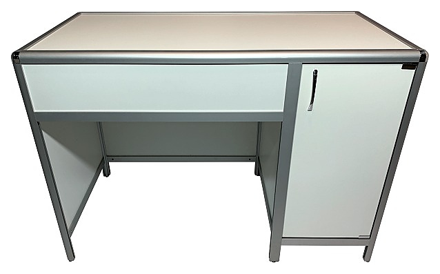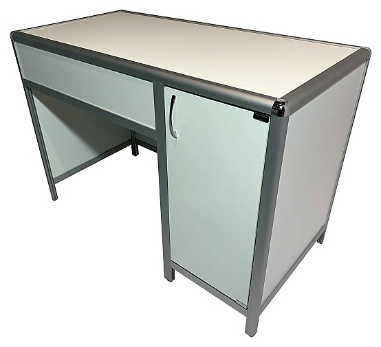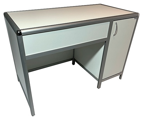 Лабораторный стол Мед Мебель MED 10.004al с РУ предназначен для организации рабочего места сотрудников лабораторий или других медучреждений. Модель оснащена боковой тумбой справа с дверцей и регулируемыми по высоте ножками. Каркас обеспечивает легкость и прочность конструкции. Столешница и обшивка выполнены из ЛДСП, каркас - из алюминиевого профиля, покрытого порошковой краской. Стол поставляется с регистрационным удостоверением. Особенности: